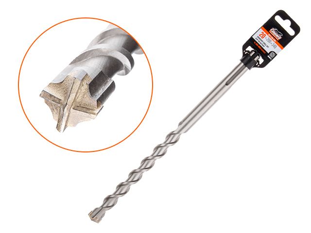 Тип и назначение: бур (сверло) для сверления отверстий в бетоне, армированном бетоне, кирпичной кладке, природном и искусственном камне. Оснащен твердосплавным карбид-вольфрамовым наконечником с четырьмя режущими кромками. Центрирующий наконечник обеспечивает точное засверливание. Корпус бура выполнен из закаленной конструкционной легированной стали и термообработан. Канавка U-образной формы способствует эффективному отводу шлама. Подходит для интенсивных нагрузок;