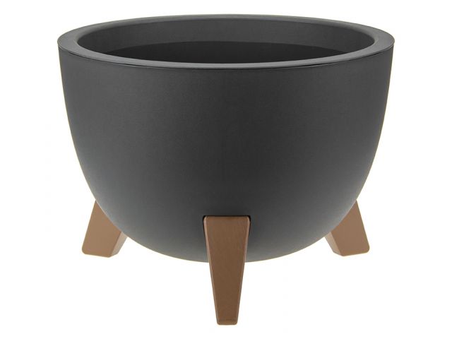 Кашпо со вставкой на ножках имеет круглую форму и матовую поверхность.