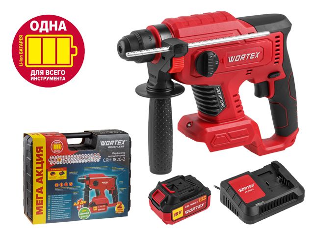 Аккум. перфоратор WORTEX CRH 1820-2 в чем. ALL1 МЕГА АКЦИЯ БЕСЩЕТ., 18 В, 2.2 Дж, 20 мм, 1х4 А*ч (вес 1,7 кг, 4 режима)