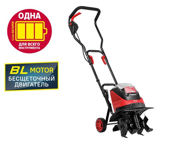 Аккумуляторный культиватор предназначен для обработки земли в парниках, теплицах, оранжереях и небольших приусадебных хозяйствах. С его помощью можно разрыхлять грунт, культивировать почву и уничтожать сорняки. Работа от аккумулятора позволяет легко и быстро справиться с задачами. Никаких вредных выхлопов и привязки к розетке! Модель оснащена бесщеточным двигателем, что обеспечивает повышенную производительность, долгий срок службы и на 50% сокращает расход энергии аккумулятора! Высокое качество обработки достигается благодаря мощному двигателю, а также большой ширине и глубине культивации. Наличие складной рукоятки способствует компактности при хранении агрегата. Колеса облегчают транспортировку. Защитный кожух предотвращают попадание земли на оператора, а также загрязнение корпуса прибора. Инструмент изготовлен из ударопрочного пластика PA6GF30.