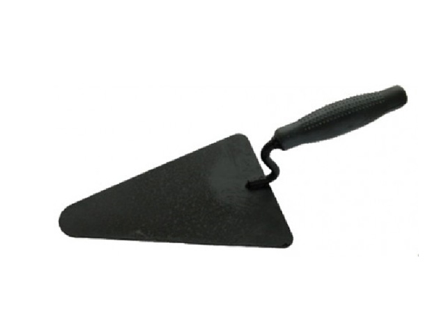 Кельма бетонщика имеет рабочее полотно треугольной формы. Используется при кладке кирпича, а также для отмеривания и нанесения цементного раствора.