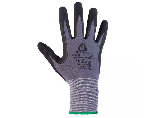 Перчатки с защитой от порезов, р-р 10/XL (полиэфир, микронитрил. покр.), серый/черный (перчатки стекольщика, антипорезные) (JETA SAFETY) купить в Минске: