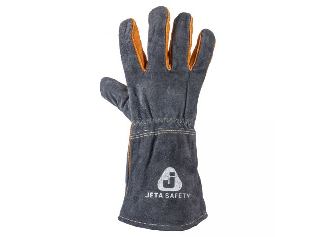 Перчатки сварщика Jeta Safety с крагой из спилковой кожи с подкладкой из хлопчатобумажной ткани и флиса Материал: спилок.Кожа: качество A+ (суперпремиум, толщина кожи: 1,3-1,5 мм).Подкладка: флис на ладонной части + хлопковый деним.Шов: тройной кевларовый шов.Длина: 350 мм.EN388: 4244ХEN407: 434X4XЗащитные свойства: Ми, Мп, Ти, Тр, То, Тп400, ТтЗащита от: контакта с нагретыми поверхностями температурой до 400 °С, искр и брызг расплавленного металла, открытого пламени, конвективной теплоты и теплового излучения, истирания, проколов, порезов.Особенности: . Перчатки имеют абсорбирующую мягкую, дышащую, комфортную и теплоизолирующую подкладку;. Подкладка полностью прошита изнутри;. Изготовлены из аргентинской кожи, свободной от хрома (данный метод изготовления делает кожу чрезвычайно мягкой, безопасной и износостойкой). . Обеспечивают полную свободу движения рук (подтверждено сертификатом LWG);. Уровень защиты подтвержден сертификатом соответствия ТР ТС и европейским сертификатом СЕ; . Отлично подходят для сварочных работ, кузнечного дела, садовых работ, для работ со стеклом и острыми краями металла;. Оригинальный крой, исключающий швы в местах сгибов пальцев;. Все швы полностью усилены кожаным кантом для защиты от искр и выплесков металла;. Эластичная тесьма на тыльной стороне для лучшей посадки перчатки на запястье.