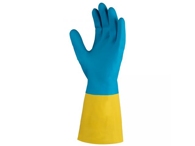 Перчатки К80 Щ50 неопреновые хозяйственно - промышленные, р-р 11/XXL, желто-голубые, JetaSafety (Хозяйствен., промышл. из неопрена, плотные, прочные,L