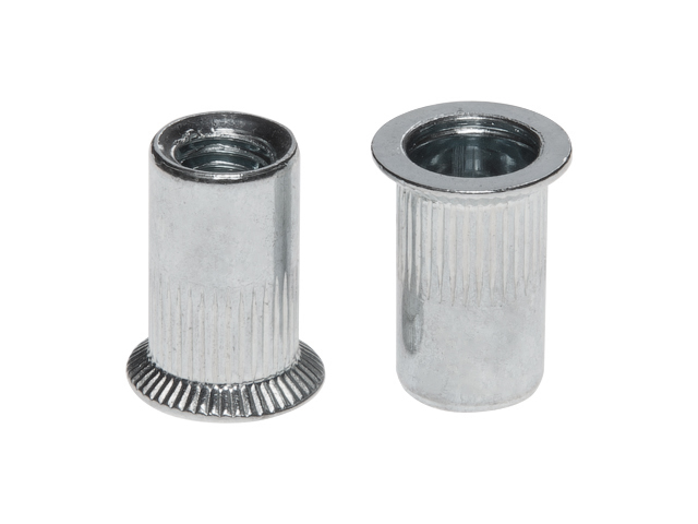 Стальная оцинкованная резьбовая заклепка с насечками и потайным бортиком применяется для соединения материалов, где необходимо создать