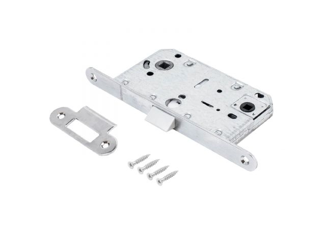 Универсальная защёлка врезная для установки на деревянные межкомнатные двери. Материал - сталь, гальваническое покрытие.Под ручку с квадратом 8 мм и сантехническую завертку с квадратом 6 мм. Удаление ключевого отверстия - 50 мм. Межосевое расстояние - 96 мм. Овальная торцевая планка для возможности установки с помощью автоматического инструмента. Ширина планки - 18мм. Габариты корпуса - 132х74х15 мм. Защелка из ударопрочного пластика.