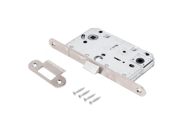 Универсальная защёлка врезная для установки на деревянные межкомнатные двери. Материал - сталь, гальваническое покрытие.Под ручку с квадратом 8 мм и сантехническую завертку с квадратом 6 мм. Удаление ключевого отверстия - 50 мм. Межосевое расстояние - 96 мм. Овальная торцевая планка для возможности установки с помощью автоматического инструмента. Ширина планки - 18мм. Габариты корпуса - 132х74х15 мм. Защелка из ударопрочного пластика.