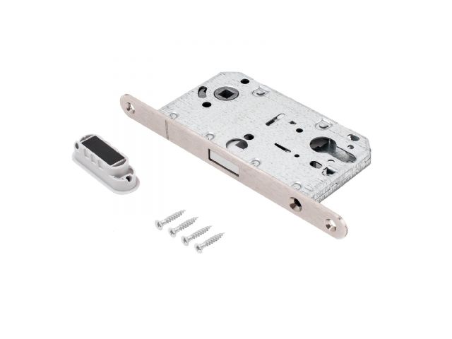 Универсальный магнитный врезной замок для установки на деревянные межкомнатные двери. Материал - сталь, гальваническое покрытие. Удаление ключевого отверстия - 50 мм. Межосевое расстояние - 85 мм. Овальная торцевая планка. Ширина планки - 18мм. Габариты корпуса - 132х74х15 мм. Засов из ударопрочного пластика. Цилиндровый механизм в комплект не входит.