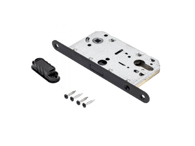 Универсальный магнитный врезной замок для установки на деревянные межкомнатные двери. Материал - сталь, полимерное покрытие. Удаление ключевого отверстия - 50 мм. Межосевое расстояние - 85 мм. Овальная торцевая планка. Ширина планки - 18мм. Габариты корпуса - 132х74х15 мм. Засов из ударопрочного пластика. Цилиндровый механизм в комплект не входит.