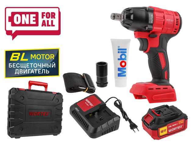 Аккум. ударный гайковерт WORTEX CWR 0318 акб и зу в чем. ALL1 МЕГА АКЦИЯ 18 В, 310 Н*м, 1/2", 4 А*ч (вес 2.0 кг)