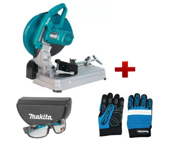 Отрезная пила по металлу MAKITA LW 1400 в кор. + АКЦИЯ Защитные очки + Перчатки "Механик" XL (2200 Вт, 355х25.4 мм, глуб. до 127 мм,)