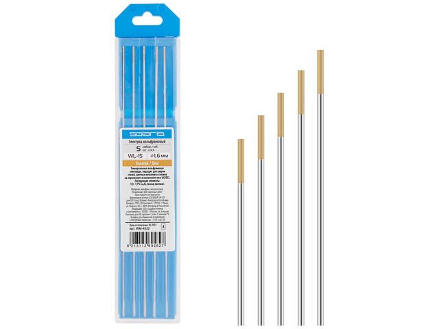 Электрод вольфрамовый золотой WL-15, Ф 1,6 мм (набор 5 шт) SOLARIS