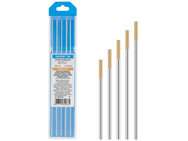 Электрод вольфрамовый золотой WL-15, Ф 2,0 мм (набор 5 шт) SOLARIS