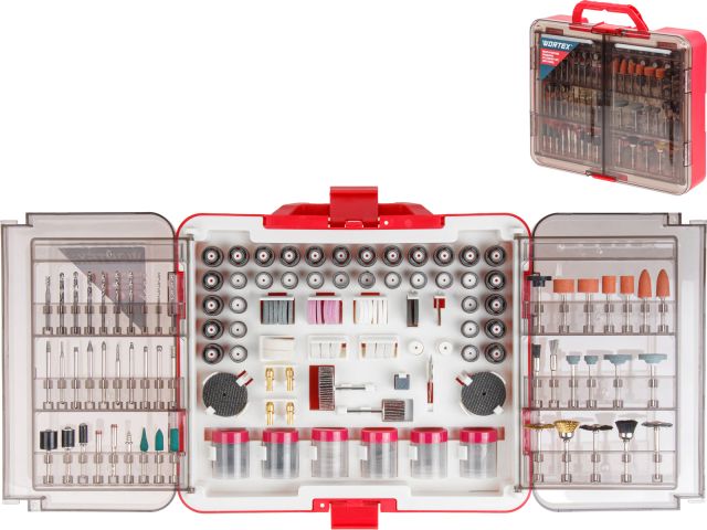 Набор аксессуаров для гравера WORTEX 418 предметов (универсальный) (Цанги: 1,6 мм, 2,4 мм, 3,2 мм) купить в Минске: