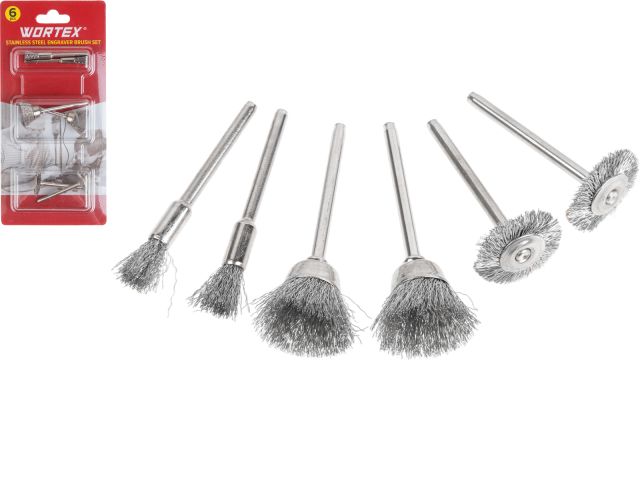 Набор щеток для гравера из нерж. стали WORTEX (6 шт. в блистере, хвостовик 3,2 мм) купить в Минске:
