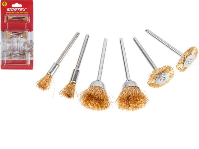 Набор щеток для гравера латунных WORTEX (6 шт. в блистере, хвостовик 3,2 мм)