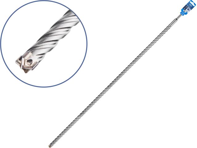 Тип и назначение: бур (сверло) для особо сложных работ при сверлении отверстий в железобетоне, бетоне, кирпичной кладке, камне, граните. Оснащен цельным X-образным твердосплавным наконечником Ceratizit повышенной твердости с четырьмя режущими кромками, который фиксируется особо прочным припоем, рассчитанным на высокие рабочие температуры и значительные ударные нагрузки. Центрирующий наконечник обеспечивает точное засверливание. 4 отдельные канавки быстро и эффективно удаляют шлам и повышают производительность. Тело сверла обладает большей жесткостью, а следовательно меньше подвержено колебаниям в процессе бурения, что улучшает точность просверленного отверстия, снижает износ тела бура и вибрации перфоратора. Подходит для интенсивных нагрузок;