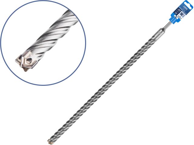 Тип и назначение: бур (сверло) для особо сложных работ при сверлении отверстий в железобетоне, бетоне, кирпичной кладке, камне, граните. Оснащен цельным X-образным твердосплавным наконечником Ceratizit повышенной твердости с четырьмя режущими кромками, который фиксируется особо прочным припоем, рассчитанным на высокие рабочие температуры и значительные ударные нагрузки. Центрирующий наконечник обеспечивает точное засверливание. 4 отдельные канавки быстро и эффективно удаляют шлам и повышают производительность. Тело сверла обладает большей жесткостью, а следовательно меньше подвержено колебаниям в процессе бурения, что улучшает точность просверленного отверстия, снижает износ тела бура и вибрации перфоратора. Подходит для интенсивных нагрузок;