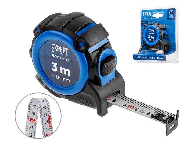 Рулетка 3м/16мм EXPERT STARTUL (SE3012-0316) (Автостоп, двухсторонняя шкала нанесения, нейлоновое покрытие,двухсторонний зацеп) купить в Минске: