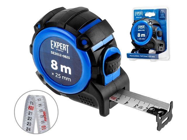 Рулетка 8м/25мм EXPERT STARTUL (SE3012-0825) ( Автостоп, двухсторонняя шкала нанесения, нейлоновое покрытие, двухсторонний зацеп) купить в Минске: