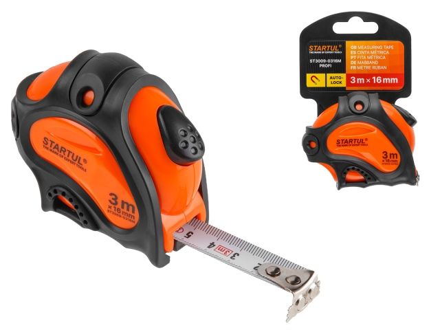 Рулетка 3м/16мм STARTUL PROFI (ST3009-0316M) (Нейлоновое покрытие, автостоп, магнитный зацеп) купить в Минске: