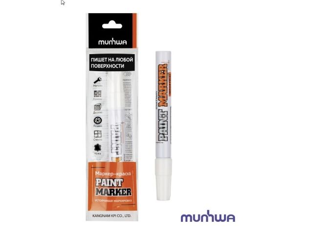 Маркер-краска промышленный белый MUNHWA INDUSTRIAL (толщ. линии 4.0 мм. Цвет белый, европодвес) купить в Минске: