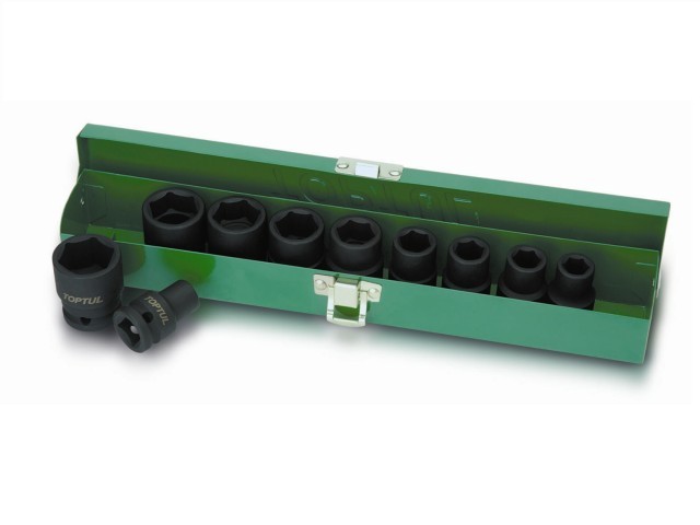 Набор головок ударных 1/2" TOPTUL включает в себя 10 шестигранных головок (10 - 24 мм), изготовленных из хром молибденового сплава, с динамическим профилем. Материал головок хром-молибден (CrMo) придает им дополнительную прочность при работе с пневмоинструментом. Рекомендуется для профессионального использования. Размеры металлического кейса: 303х45х47 мм.