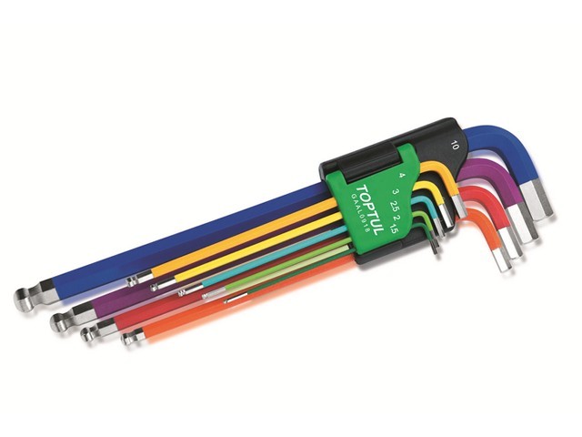 Набор ключей шестигр. 1,5-10мм 9шт экстра-длин.с шар. цветные TOPTUL