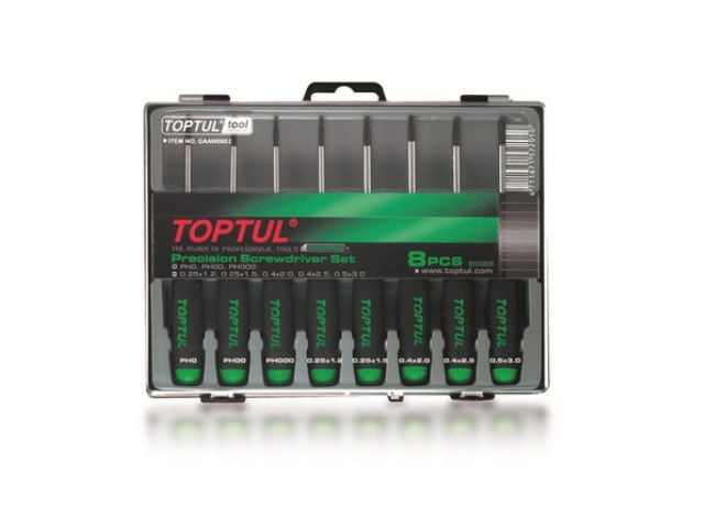 Набор отвёрток Toptul 8 предметов. В комплектации 8 прецезионных отверток.
