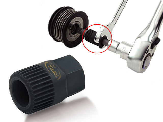 Съемник шкива генератора TOPTUL имеет специальную конструкцию для остановки шкива и снятия центрального крепежного болта. Применяется с 17 мм гаечным ключем и битой M10. Подходит для Audi, VW, Volvo и других автомобилей. Рекомендуется для профессионального использования.