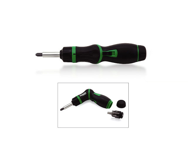 Трещоточная отвёртка пистолетного типа 8 в 1. В комплектации имеет 7 насадок и переходник под шуроповерт.