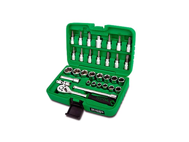 "Набор торцевых головок и бит 1/4"", 3/8"" TOPTUL состоит из 45 предметов. Рекомендуется для профессионального использования
