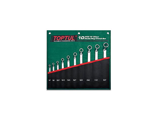 Набор ключей накидных TOPTUL состоит из 10 инструментов размером 6х7, 8х9, 10х11, 12х13, 14х15, 16х17, 18х19, 20х22, 21х23 и 24х27 мм серии AAEI0607-2427.
