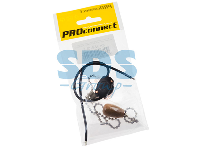 Выключатель для настенного светильника с хромированной цепочкой, проводами и деревянным наконечником.