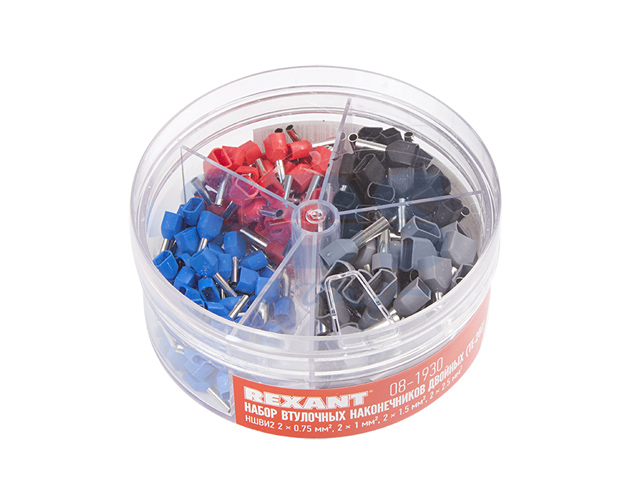 Набор втулочных наконечников двойных НШВИ2 (2х0.75 мм2, 2х1 мм2, 2х1.5 мм2, 2х2.5 мм2) в боксе (ТE-2 (REXANT)