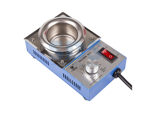 Паяльная ванна CT-21C для лужения выводов малоразмерных электронных компонентов, в том числе демонтированных микросхем для повторного их использования.