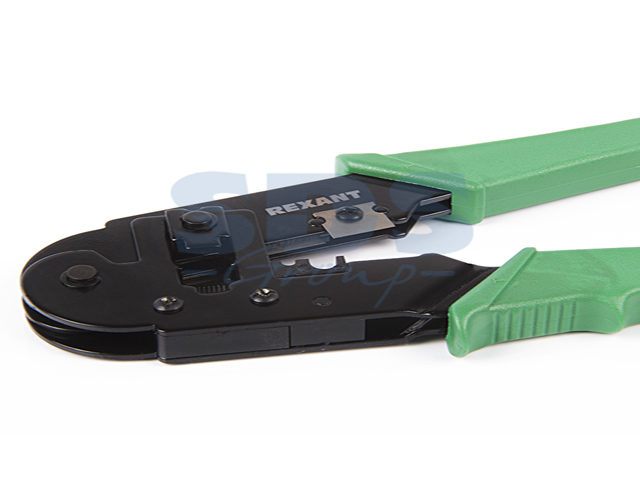 Кримпер REXANT HT-210T - универсальный инструмент для обжима разъемов RJ-45 (8P8C), а также для снятия изоляции как с кабеля, так и с жилы и обрезки проводов.