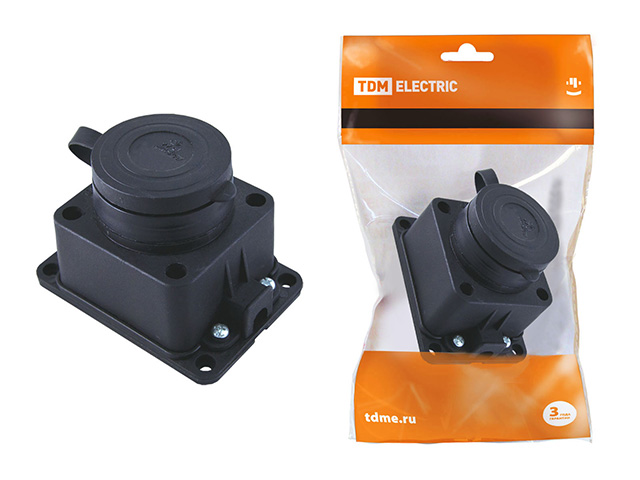 Розетка настенная с заглушкой каучук 2Р+РЕ 16А 250В IP44 TDM