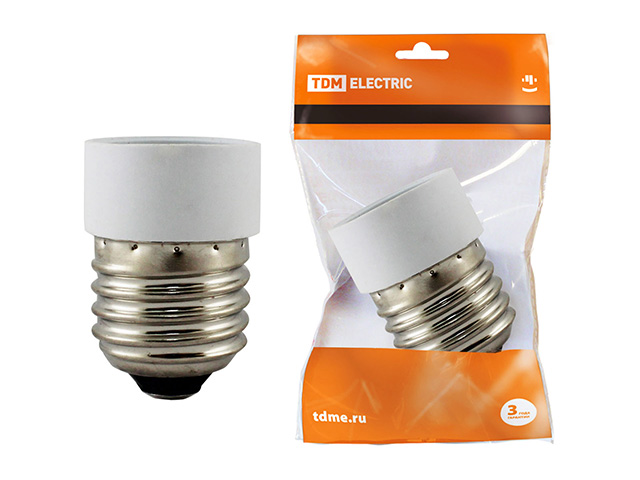 Переходник E27-E14, белый, TDM (Переходник E27-E14 белый TDM (SQ0335-1002) предназначен для подключения ламп к светильникам с патрон)