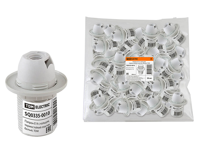 Патрон Е14 с кольцом, термостойкий пластик, белый, TDM