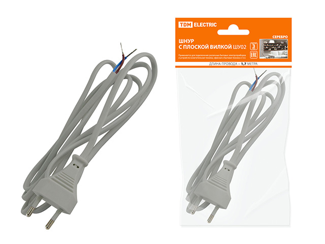 Шнур с плоской вилкой ШУ02 ШВВП 2х0,75мм2 1,7 м. серебр. металлик TDM купить в Минске: