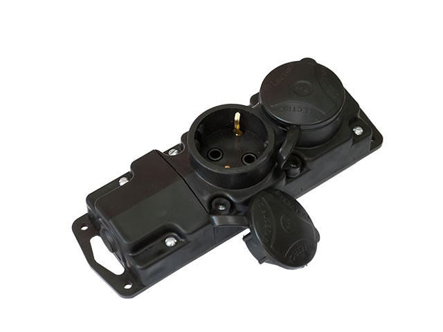 Розетка 2-ая переносная (с/з, 16А, 250В, брызг. защ.) черная, Bylectrica