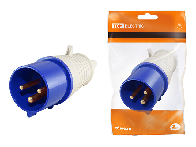 Вилка 033 2Р+РЕ 63А 220В IP54 TDM (пылебрызгозащищенный)