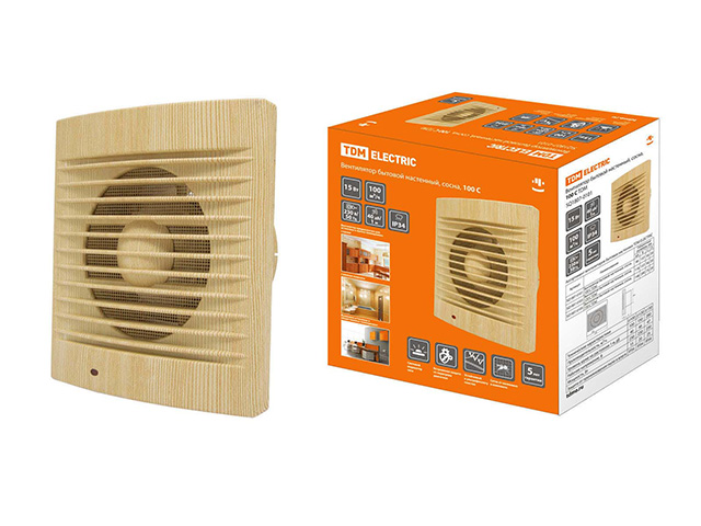 Вентилятор бытовой настенный, 100 С "ЭКО" (сосна) TDM