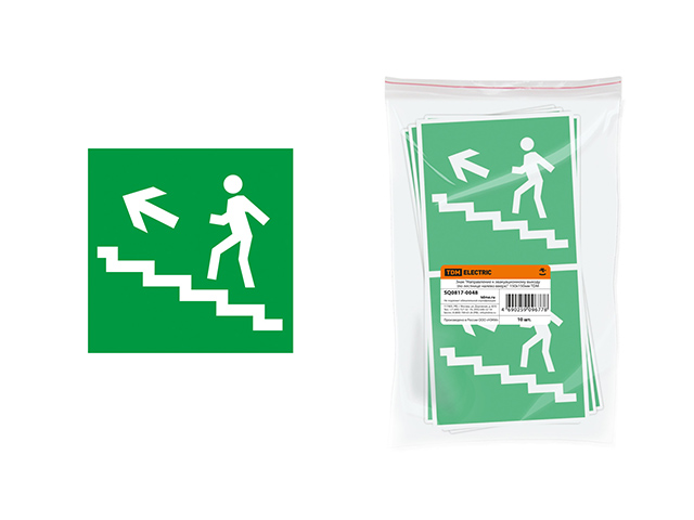 Знак "Направление к эвакуационному выходу (по лестнице налево вверх)" 150х150мм TDM