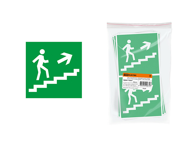 Знак "Направление к эвакуационному выходу (по лестнице направо вверх)" 150х150мм TDM