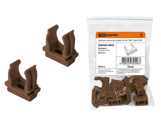 Крепеж-клипса для трубы 20 мм (10шт) "ЭКО" (бук) TDM