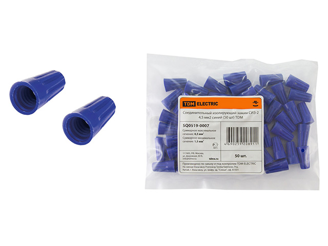 Зажим соединительный изолирующий СИЗ-2 4,5 мм2 синий (50 шт) TDM