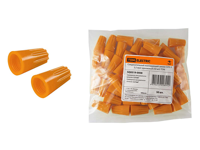 Зажим соединительный изолирующий СИЗ-3 5,5 мм2 оранжевый (50 шт) TDM