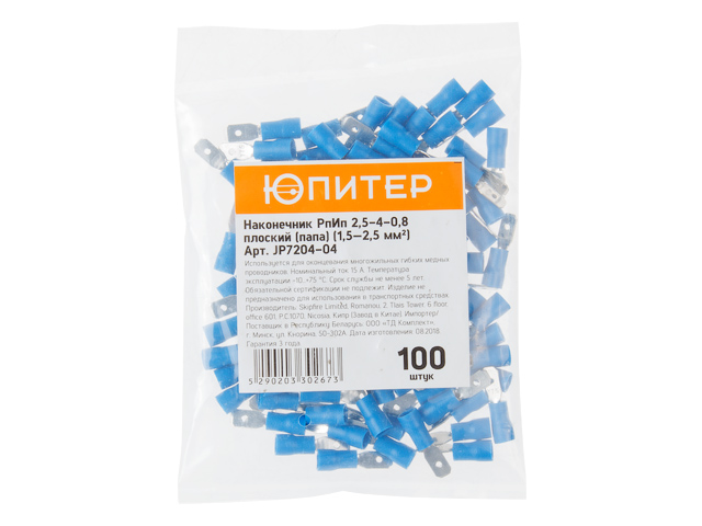 JP7204-02 Наконечник РпИм 2,5-5-0,8 плоский (мама) (1,5 - 2,5 мм2) (100 шт) Юпитер;